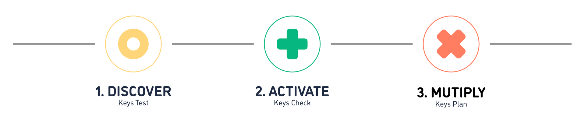In stap 1 ontdek je met de Keys Test jouw potentieel: 5 persoonlijke sleutels. In stap 2 en 3 word je gestimuleerd om actief met deze sleutels aan de slag te gaan in je leven.